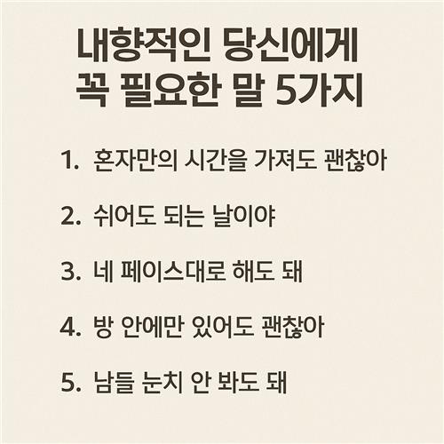 내향적인 당신의 모습도, 그 자체로 충분히 소중하고 아름다운 존재라는 걸 꼭 기억해 주세요.
