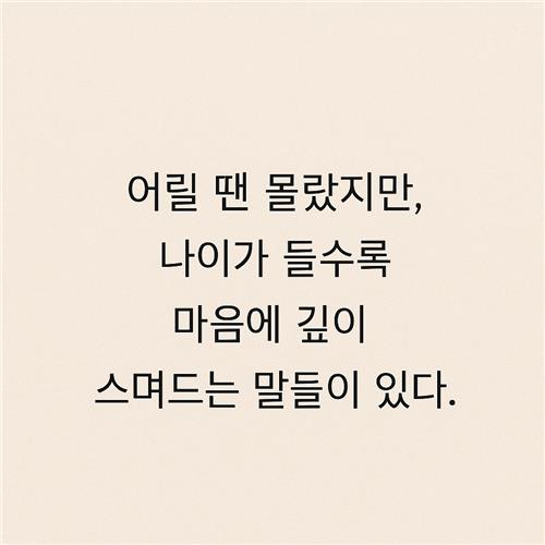 어릴 적 들었던 명언들이 시간이 지나도 머릿속에 남아 있는 경우가 많습니다. 하지만 당시엔 무슨 말인지 몰랐거나, 그저 멋진 말이라고만 생각했을 뿐이죠. 그러다 어른이 되어 삶의 굴곡과 다양한 경험을 마주하며, 그때 그 말들이 얼마나 깊고 진한 의미를 담고 있었는지 새삼 느끼게 됩니다. 오늘은 우리가 왜 이제서야 그 명언들이 마음 깊이 다가오는지, 그 이유를 하나씩 풀어보려 해요. 같은 경험이 있다면 댓글로 함께 나눠주세요!