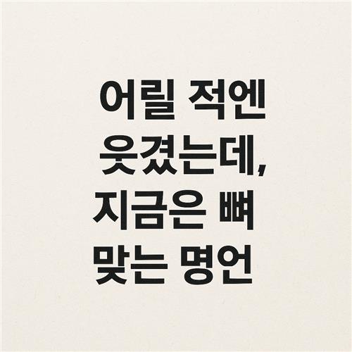 어릴 때는 그냥 웃고 넘겼던 말들이, 어느 순간부터는 마음을 콕 찌르듯 다가온 적 있으신가요? 나이가 들고, 인생을 조금씩 알아갈수록 유머처럼 들렸던 그 말들이 인생의 진리처럼 느껴질 때가 많습니다. 오늘은 그 중에서도 ‘지금 들으면 뼈 때리는 명언들’을 모아 하나씩 살펴보려 해요.